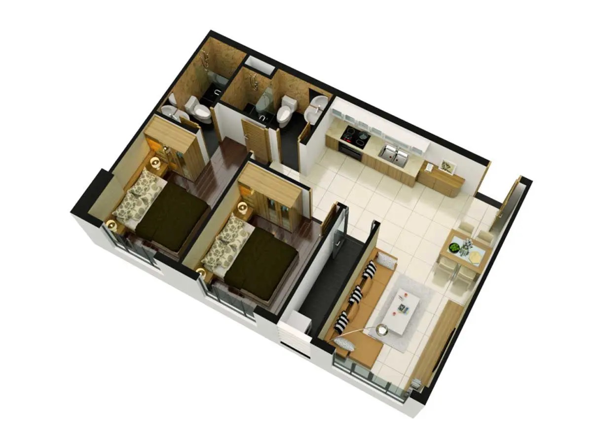Nếu bạn ưa thích phong cách hiện đại, “Căn hộ Futuristic” là lựa chọn hoàn hảo. Với việc sử dụng các vật liệu cao cấp như kính và kim loại, mẫu thiết kế này mang lại cảm giác sang trọng cùng sự hiện đại. Phòng ngủ được bố trí với giường đôi và hệ thống đèn LED thông minh, cho phép điều chỉnh ánh sáng linh hoạt theo nhu cầu.