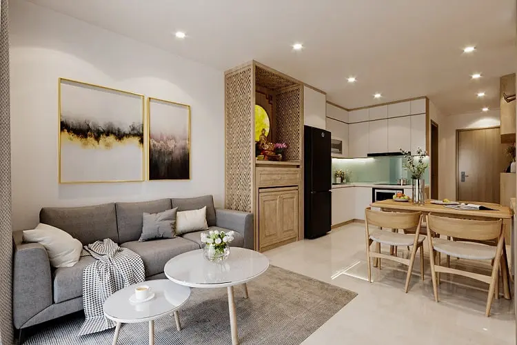 Tạo không gian mở bằng cách kết hợp các phòng chức năng để tạo nên sự liên tục và rộng rãi cho căn hộ 50m2. Điều này không chỉ cải thiện tính thẩm mỹ mà còn giúp di chuyển dễ dàng giữa các khu vực.
