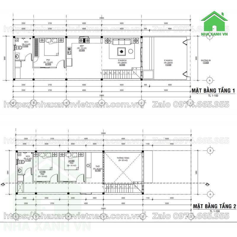 Bản vẽ thiết kế nhà ống 2 tầng diện tích 5x20m đang trở thành một lựa chọn phổ biến, đặc biệt trong các khu vực đô thị có không gian hạn chế. Mô hình nhà ống 2 tầng không chỉ tối ưu hóa diện tích sử dụng mà còn mang đến nét đẹp hiện đại và tinh tế cho ngôi nhà.