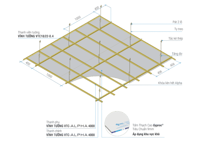 Khoảng Cách Khung Xương Trần Thạch Cao