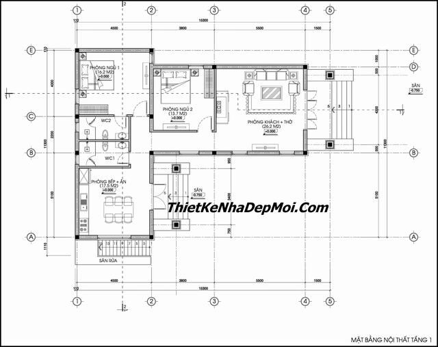 Phần chính của ngôi nhà gồm phòng khách, phòng bếp và một hoặc hai phòng ngủ, là nơi các thành viên trong gia đình thường xuyên tụ tập và sinh hoạt. Trong khi đó, phần phụ thường được bố trí thêm phòng ngủ, phòng tắm, và có thể là khu vực làm việc hoặc phòng giải trí, tạo ra không gian riêng tư và thư giãn cho từng người.
