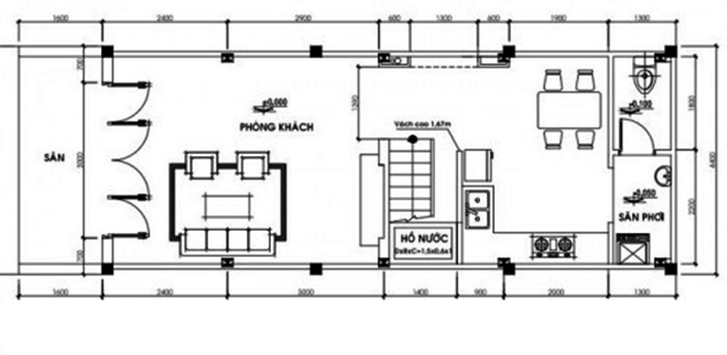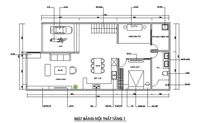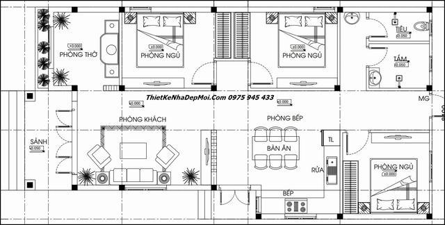 Mặt bằng nhà cấp 4 gác lửng 4x13m tiện nghi hiện đại