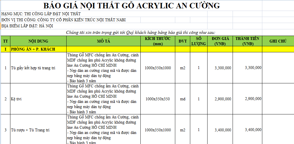 Để tìm hiểu thêm về báo giá ván MDF phủ acrylic An Cường, khách hàng có thể tham khảo thông tin chi tiết từ đại lý hoặc nhà phân phối để nhận được tư vấn tốt nhất cho dự án nội thất của mình.