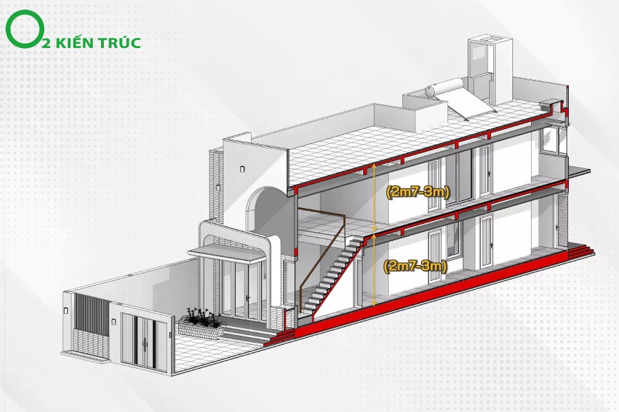 Chiều cao gác lửng là một yếu tố rất quan trọng trong thiết kế nhà ở. Thông thường, chiều cao từ nền nhà đến sàn gác lửng dao động trong khoảng từ 2.7m đến 3m. Tuy nhiên, để đảm bảo không gian sống thoải mái và hợp lý, chiều cao lý tưởng thường nằm trong khoảng 2,2m đến 2,4m.