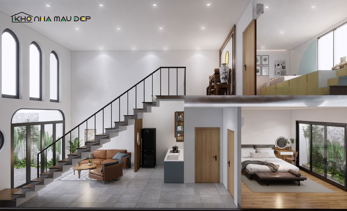 Nhà gác lửng hiện đại tối ưu không gian sống tối giản