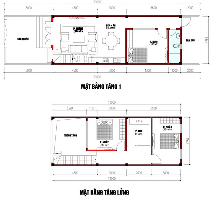 Nhà gác lửng đang trở thành lựa chọn phổ biến cho các gia đình trẻ, đặc biệt là trong những khu đô thị đông đúc. Với tổng diện tích sàn khoảng 100m², mẫu nhà này có thể dễ dàng bố trí từ 2 đến 3 phòng ngủ, phòng khách rộng rãi và bếp – ăn liên thông, giúp tối ưu hóa không gian sống.