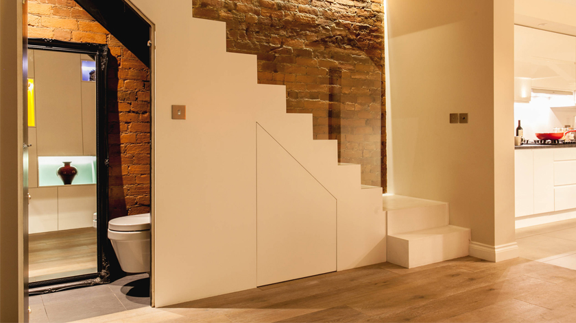 Cuối cùng, đối với những không gian hạn chế dưới cầu thang, việc thiết kế nhỏ gọn nhưng tiện dụng là rất cần thiết. Các sản phẩm nội thất đa năng như bàn cầu có ngăn kéo hay bồn rửa tích hợp chức năng tự động sẽ giúp tối ưu hóa diện tích sử dụng.