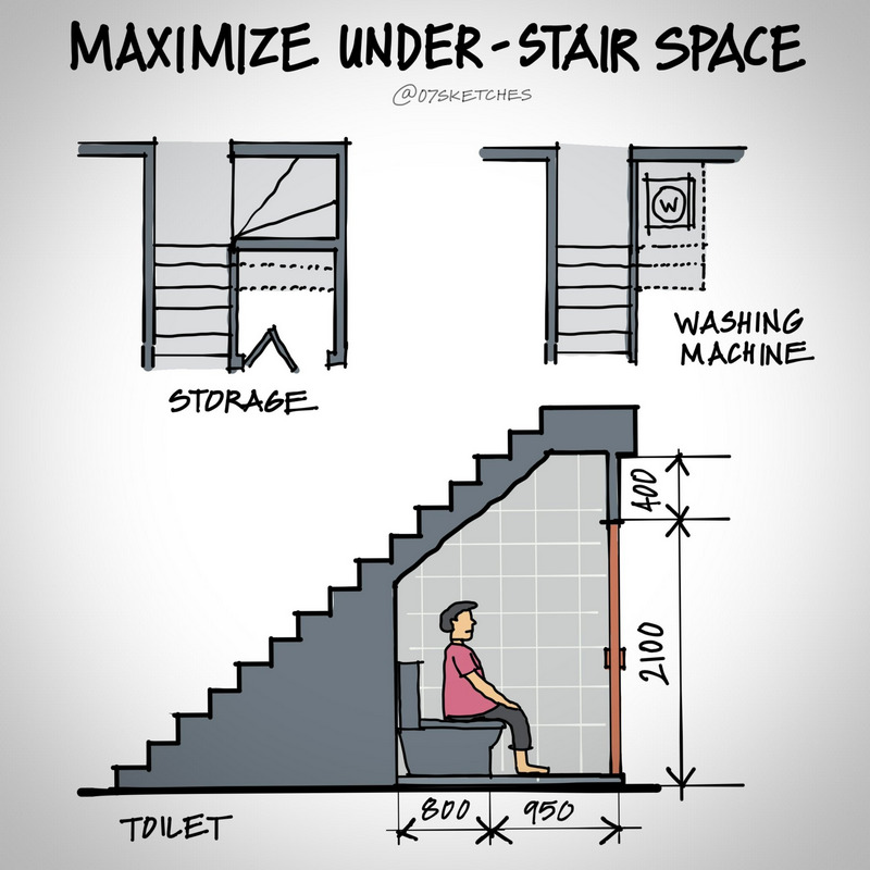 Thứ hai, việc sử dụng không gian dưới cầu thang để xây dựng nhà vệ sinh là một cách tuyệt vời để tối ưu hóa diện tích. Bạn có thể tận dụng khu vực này mà không cần mở rộng không gian sống ở tầng trên. Điều này đặc biệt có giá trị trong những ngôi nhà có diện tích hạn chế hoặc khi bạn muốn sử dụng tối đa không gian hiện có.