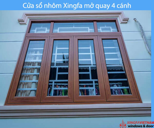 Cửa sổ mở quay 4 cánh nhôm Xingfa màu vân gỗ mang đến vẻ đẹp tự nhiên và hiện đại, rất phù hợp cho những không gian lớn từ 180cm trở lên. Sản phẩm này không chỉ đạt tiêu chuẩn chất lượng ISO mà còn có khả năng mở 90 độ, giúp tối ưu hóa tầm nhìn và ánh sáng cho ngôi nhà của bạn.
