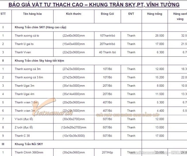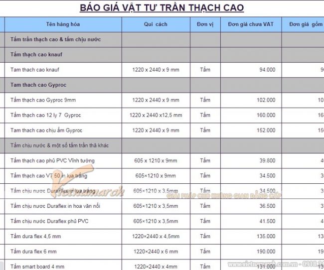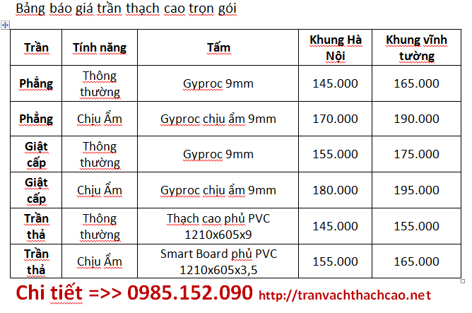 Nếu bạn cần tìm hiểu thêm về các thương hiệu khác, giá tấm thạch cao thả ở Hà Nội cũng khá cạnh tranh, chỉ từ 13.000 đến 15.500 VNĐ/tấm. Điều này giúp bạn có nhiều sự lựa chọn hơn. Đừng quên tham khảo thêm khi quyết định thi công để đảm bảo lựa chọn tốt nhất cho không gian của mình!