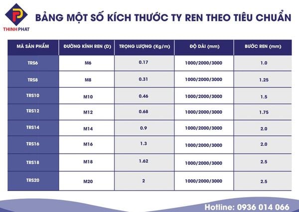 Về kích thước, thị trường hiện có các loại như M8x3000mm với giá 34,500₫ cho mỗi bó 30 cây, hay M10x3000mm với giá 50,600₫ cho 20 cây. Các sản phẩm này đều được sản xuất theo tiêu chuẩn TCVN 1916:1995, đảm bảo chất lượng và an toàn cho người sử dụng.