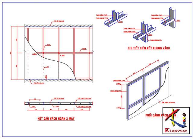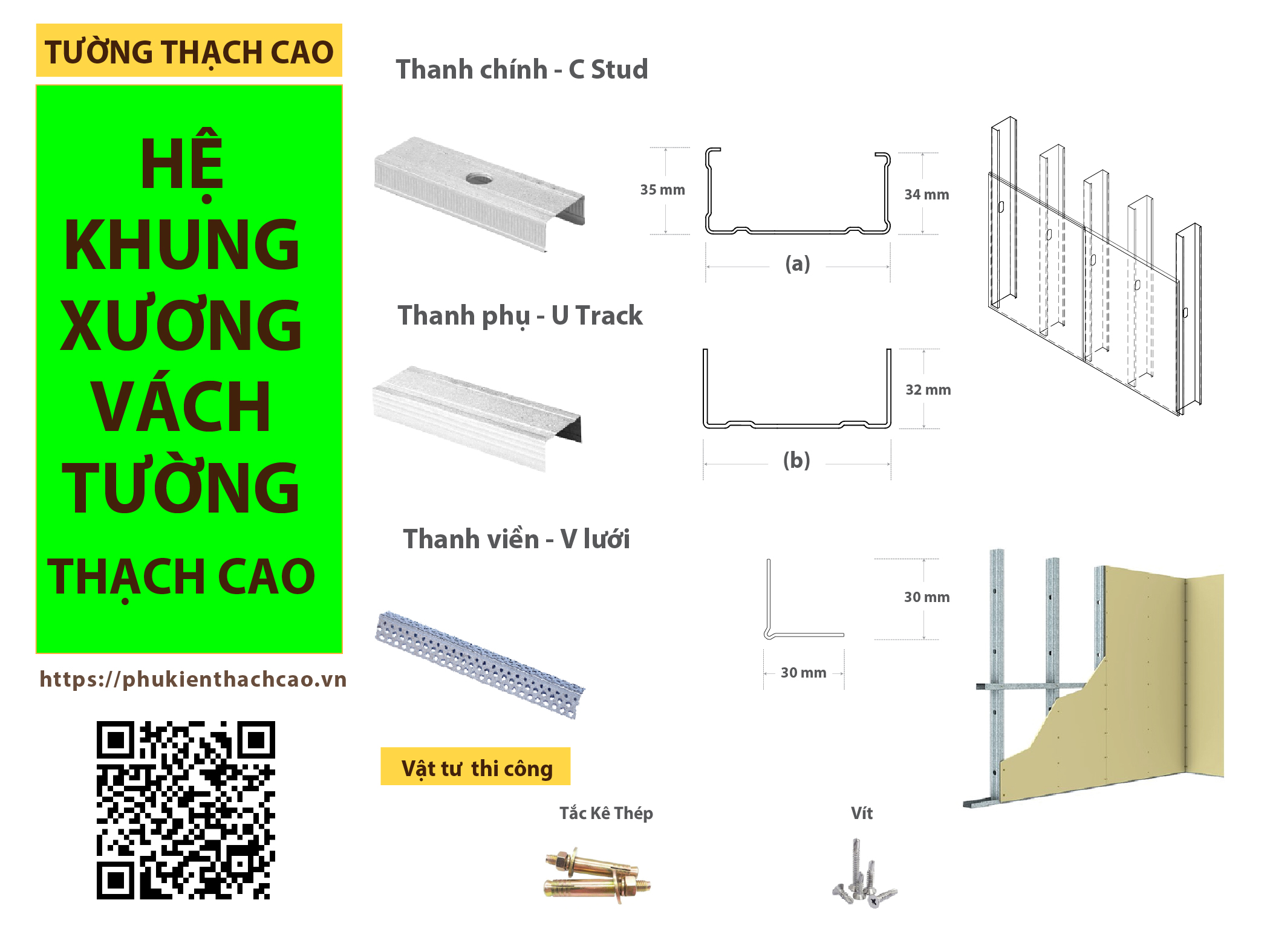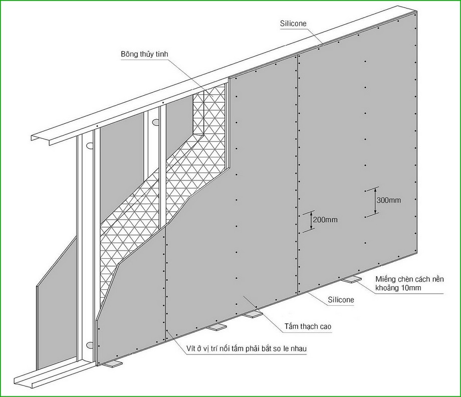 Mô tả cấu trúc khung xương vách thạch cao chi tiết