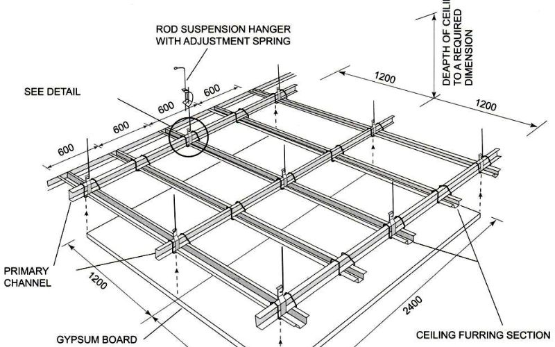 Tiếp theo, bạn cần đo chiều cao từ sàn lên đến trần. Công đoạn này rất quan trọng để xác định kích thước của panel trần phù hợp. Panel trần thạch cao thường có chiều rộng từ 60 đến 120 cm và chiều dài từ 60 đến 240 cm. Đồng thời, việc đo khoảng cách giữa các cột cũng rất cần thiết trong việc tính toán số lượng panel cần thiết cho toàn bộ không gian.