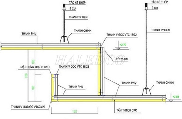 Ngoài ra, các bản vẽ cũng cần thể hiện một cách rõ ràng cách kết nối và liên kết các phần của trần thạch cao, điều này đảm bảo độ bền và sự an toàn trong quá trình sử dụng. Điều này càng trở nên quan trọng hơn khi trần thạch cao giật cấp có khả năng tạo ra các bề mặt phẳng mịn màng, giúp nâng cao giá trị thẩm mỹ của không gian sống và làm việc.