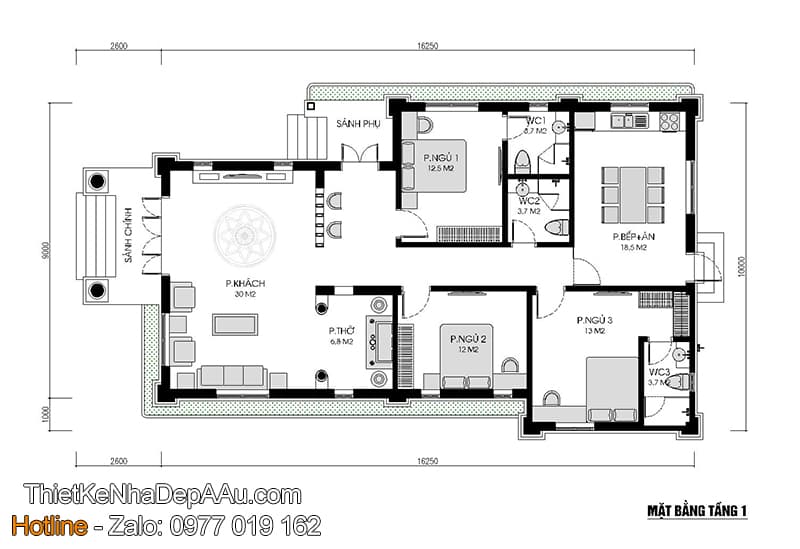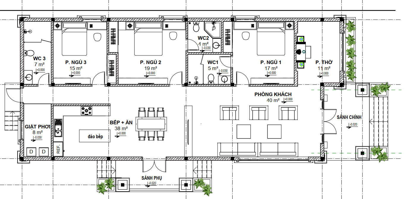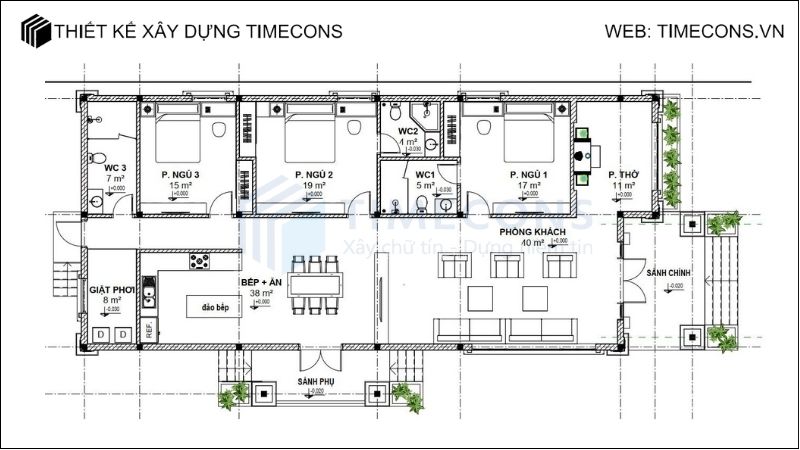 Bố trí mặt bằng khoa học sẽ giúp không gian sống thêm tiện nghi. Phòng khách có thể liên thông với bếp và khu vực ăn, tạo nên sự kết nối và ấm cúng cho mọi hoạt động gia đình. Ba phòng ngủ sẽ được thiết kế xung quanh, mang đến sự riêng tư đồng thời dễ dàng chia sẻ không gian chung.