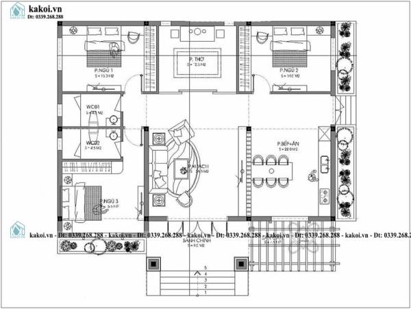 Thiết Kế Mặt Bằng Nhà Cấp 4 3 Phòng Ngủ