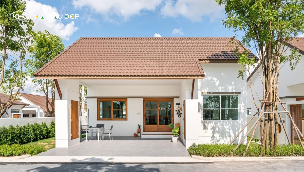 Thiết kế mái Thái hay mái Nhật đang trở thành lựa chọn yêu thích ở nông thôn, mang lại vẻ đẹp thanh thoát và hiện đại cho ngôi nhà. Đặc biệt, mẫu nhà cấp 4 mái bằng cũng được ưa chuộng, với các khối hình vuông vắn, tạo cảm giác chắc chắn nhưng không kém phần tinh tế.