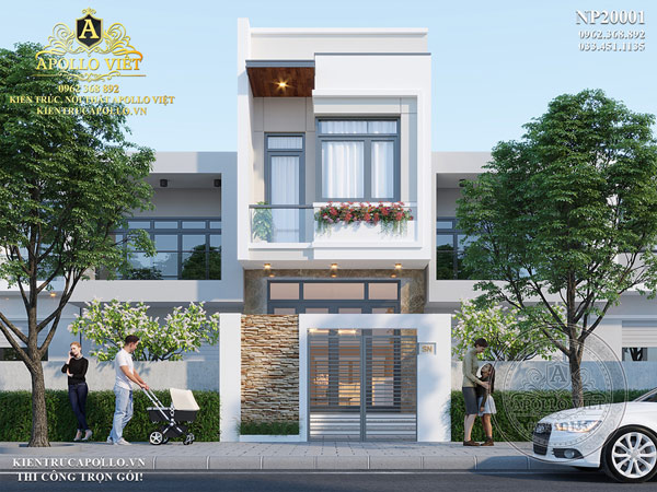 Được thiết kế theo phong cách tân cổ điển, màu sắc chủ đạo là trắng nhẹ nhàng, mang lại cảm giác sang trọng và ấm cúng. Những đường nét và hoa văn trên ngoại thất cũng góp phần tạo nên sự nổi bật cho mẫu nhà ống này.