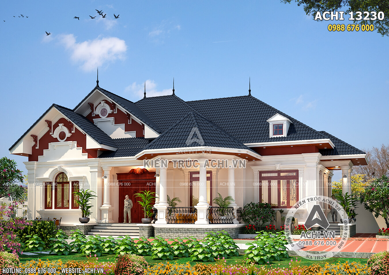 Một ưu điểm nổi bật của biệt thự mái thái 1 tầng là sự hài hòa giữa kiến trúc và thiên nhiên, nhờ vào sân vườn rộng rãi bao quanh. Thiết kế chỉ gói gọn trong 1 tầng nhưng lại rất tiện ích, đáp ứng đủ nhu cầu sinh hoạt của gia đình. Sự kết hợp giữa tiện nghi và vẻ đẹp của thiên nhiên khiến mẫu nhà này trở thành lựa chọn lý tưởng cho những ai mong muốn sống trong một không gian dễ chịu và gần gũi.
