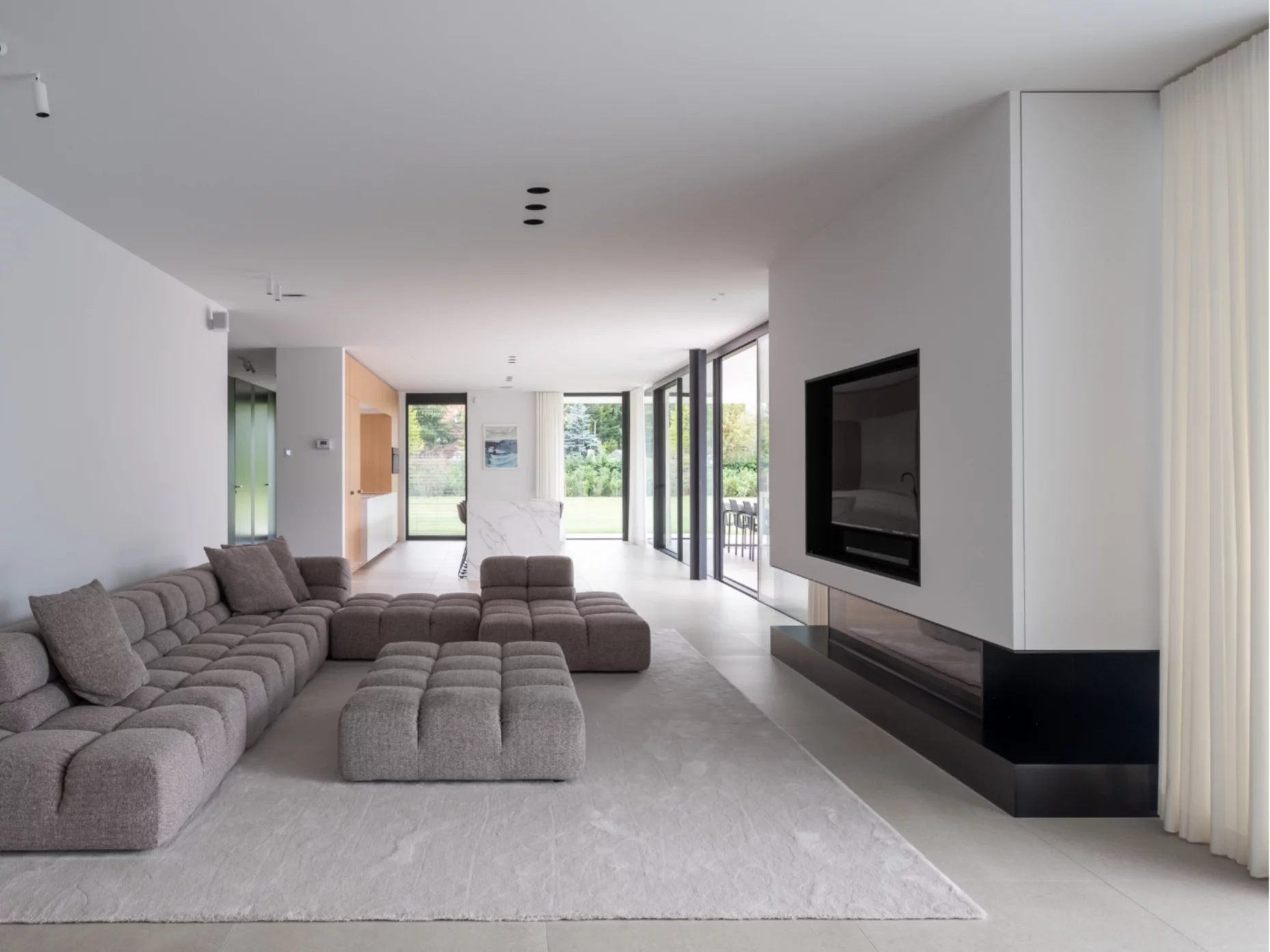 Mẫu trần thạch cao phẳng đang trở thành xu hướng hot trong thiết kế phòng khách năm 2025. Với phong cách tối giản nhưng đầy sự sang trọng, trần thạch cao phẳng mang đến vẻ đẹp hiện đại, hoàn hảo cho không gian sống. Các tấm thạch cao được xếp liền kề, tạo nên bề mặt phẳng mịn, kết hợp hoàn hảo với ánh sáng từ đèn LED âm trần hay đèn chùm nhỏ.
