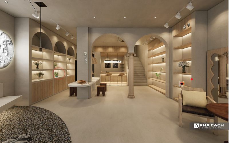 Ngoài ra, mẫu mã đa dạng và khả năng kết hợp linh hoạt với hệ thống chiếu sáng của trần thạch cao giúp tạo ra những điểm nhấn kiến trúc độc đáo. Sự hòa quyện giữa nội thất, ánh sáng và bố cục tổng thể sẽ đem đến cho quán một vẻ đẹp ấn tượng, thu hút khách hàng ngay từ cái nhìn đầu tiên.