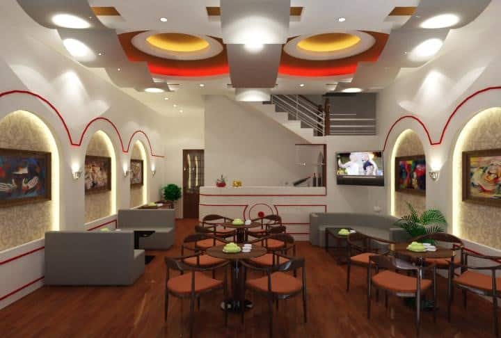 Ngoài ra, việc kết hợp hệ thống đèn âm trần hay các loại đèn lồng, đèn kim loại sẽ giúp tối ưu hóa ánh sáng, mang đến không gian sống động, thu hút sự chú ý của mọi người bước vào quán. Nếu bạn đang tìm phương án nâng tầm cho không gian kinh doanh, những ý tưởng trang trí trần thạch cao hiện đại này chắc chắn sẽ không làm bạn thất vọng.