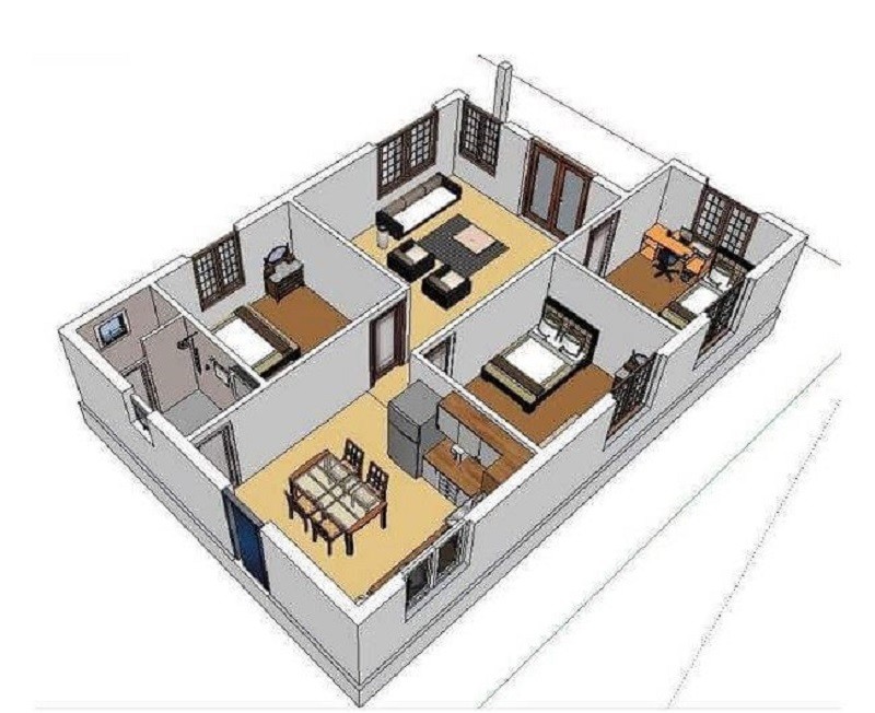 Mẫu nhà này thường bao gồm phòng khách rộng rãi, 3 phòng ngủ tiện nghi và có thể có thêm một góc nhỏ để thư giãn. Đặc biệt, không gian mở với cửa sổ lớn sẽ tạo cảm giác thoáng mát và gần gũi với thiên nhiên. Những chi tiết như hành lang và hiên rộng rãi giúp ngôi nhà trở nên thu hút và ấn tượng hơn.