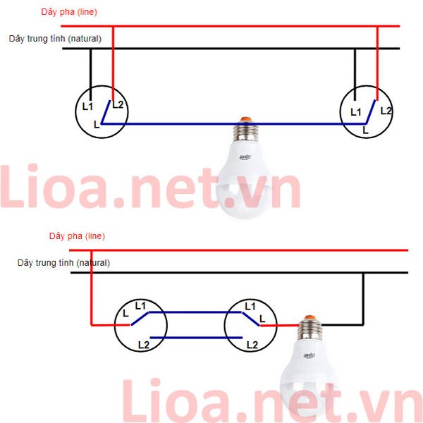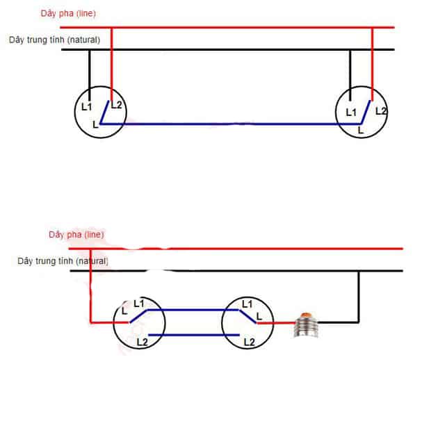 Mạch điện cầu thang điều khiển hai công tắc đèn