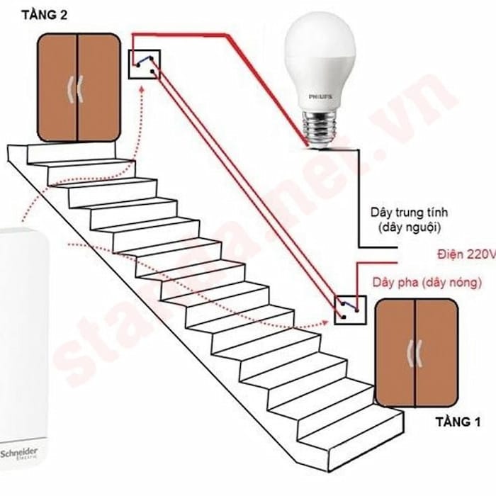 Cách lắp đồ mạch điện cầu thang đúng kỹ thuật