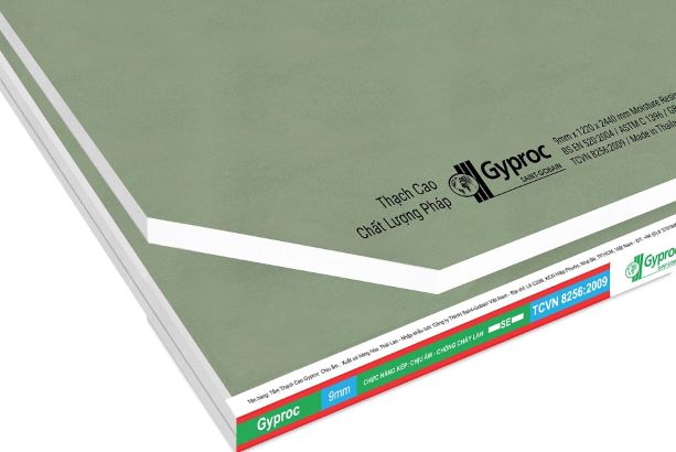 Ngoài ra, tấm thạch cao Gyproc chịu ẩm cũng rất được ưa chuộng nhờ lớp giấy bề mặt màu xanh đặc trưng. Nó được sản xuất từ lõi thạch cao và giấy có sự kết hợp của phụ gia, giúp tăng cường khả năng chống ẩm và cách âm. Sản phẩm như Knauf MoistShield cũng mang lại độ bảo vệ vượt trội với mức giá từ 125.000 VNĐ đến 155.000 VNĐ.