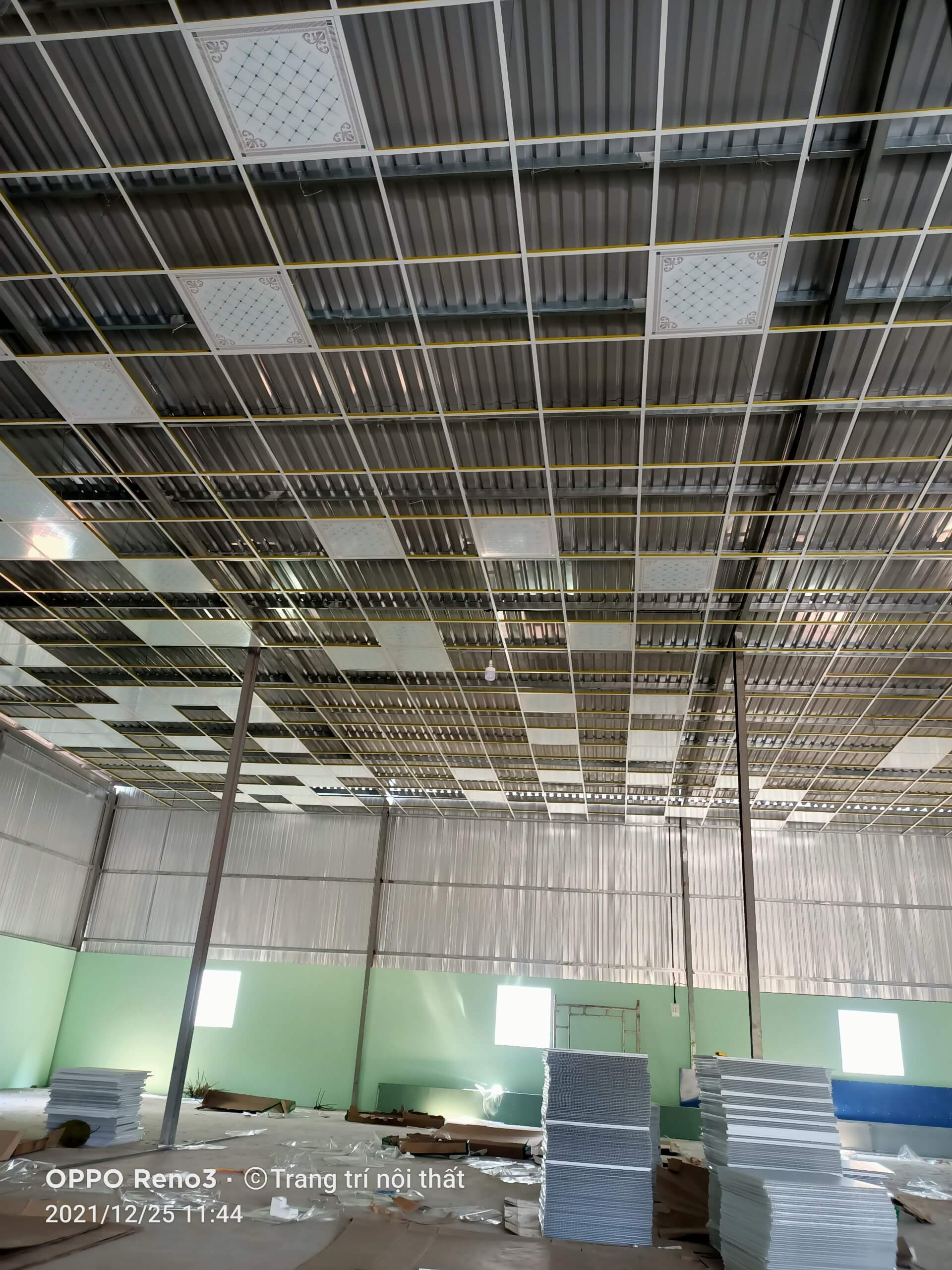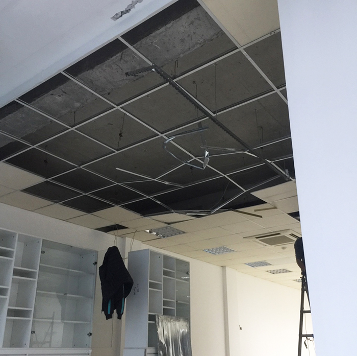 Tiếp theo, bạn sẽ tiến hành lắp dựng kết cấu hệ khung trần nổi Vĩnh Tường. Đây là phần quan trọng để đảm bảo độ bền và chắc chắn cho trần. Sau khi hoàn thành khung, hãy gắn các tấm thạch cao vào khung đã lắp đặt, đảm bảo chúng được cố định chắc chắn.