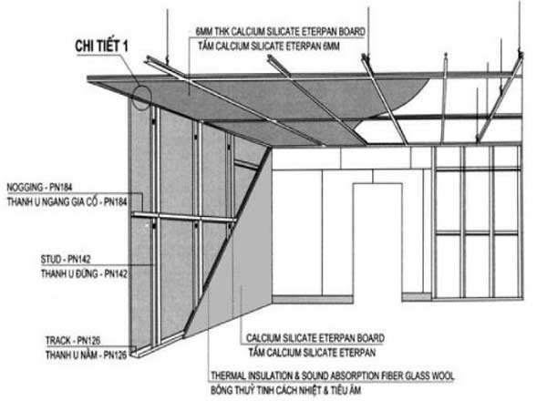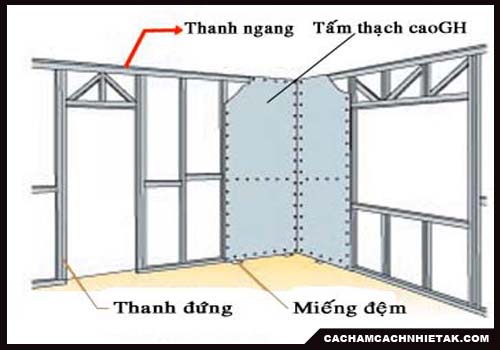 Khi đã hoàn thành khung xương, bước tiếp theo là lắp đặt tấm thạch cao lên khung. Vặn thật chặt các điểm nối giữa thanh U và chữ C bằng đinh rivet hoặc đinh vít thép. Nếu vách cao hơn 2,4m, bạn cần lưu ý đến việc gia cố để tránh tình trạng nghiêng hoặc cong vênh.