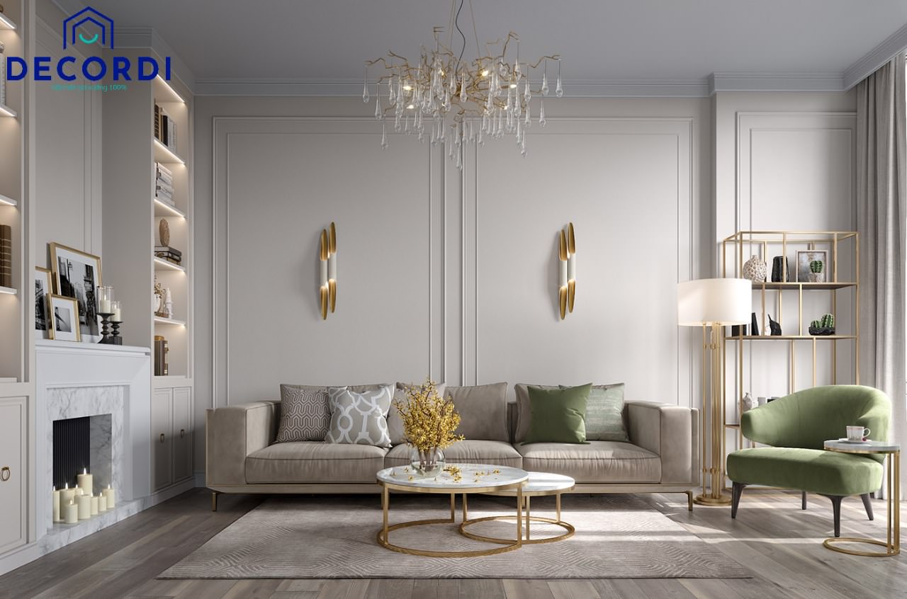 Tường phòng khách cũng đóng vai trò quan trọng trong việc tạo nên không gian tân cổ điển. Sử dụng giấy dán tường với hoa văn tinh tế hoặc sơn màu ấm sẽ mang lại cảm giác gần gũi và dễ chịu. Đừng quên thêm các tác phẩm nghệ thuật hoặc tranh ảnh cổ điển, điều này sẽ làm tăng thêm tính thẩm mỹ cho không gian sống của bạn.