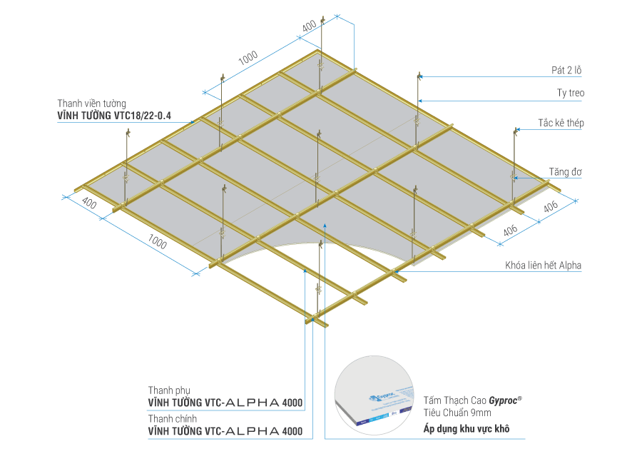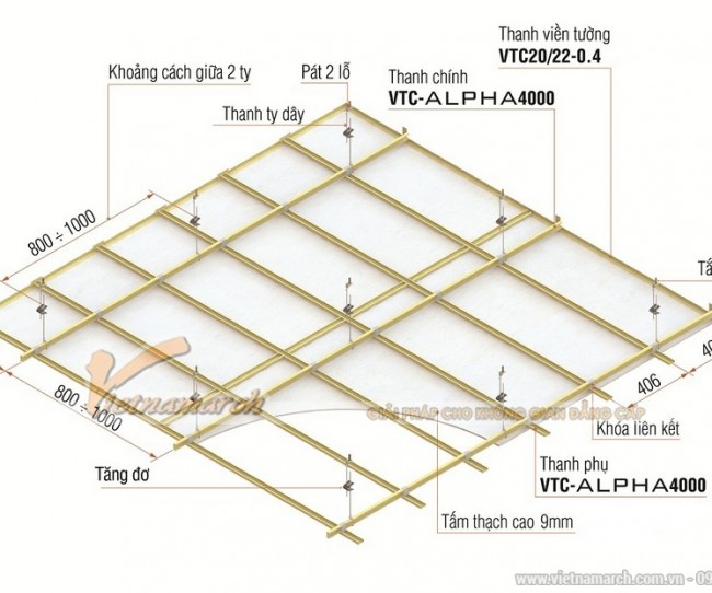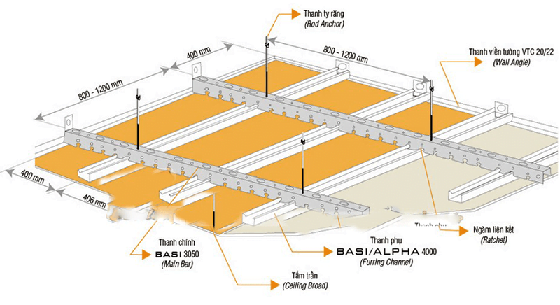 Ngoài ra, khi kết nối thanh phụ vào thanh chính, nhớ sử dụng ngàm xương cá và giữ khoảng cách 1100mm giữa các thanh chính, đồng thời không được cách tường quá 300mm. Tất cả những điều này sẽ giúp bạn có một trần thạch cao hoàn hảo, vừa đẹp vừa bền.