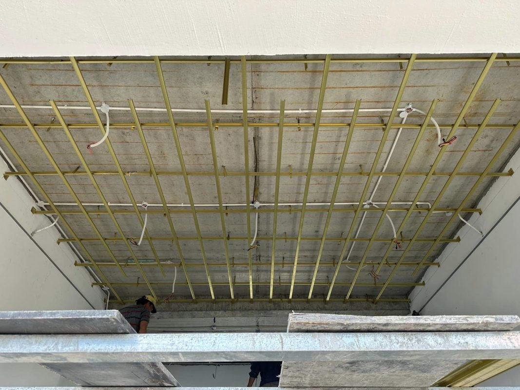 Sau khi đã hoàn tất việc lắp đặt viền tường, bạn tiến hành treo ty. Đây là bước khá quan trọng để giúp cố định khung xương trần. Sau khi ty được thiết lập, bạn sẽ treo xương chính và xương phụ, nhằm đảm bảo trần thạch cao được lắp đặt một cách vững chắc.
