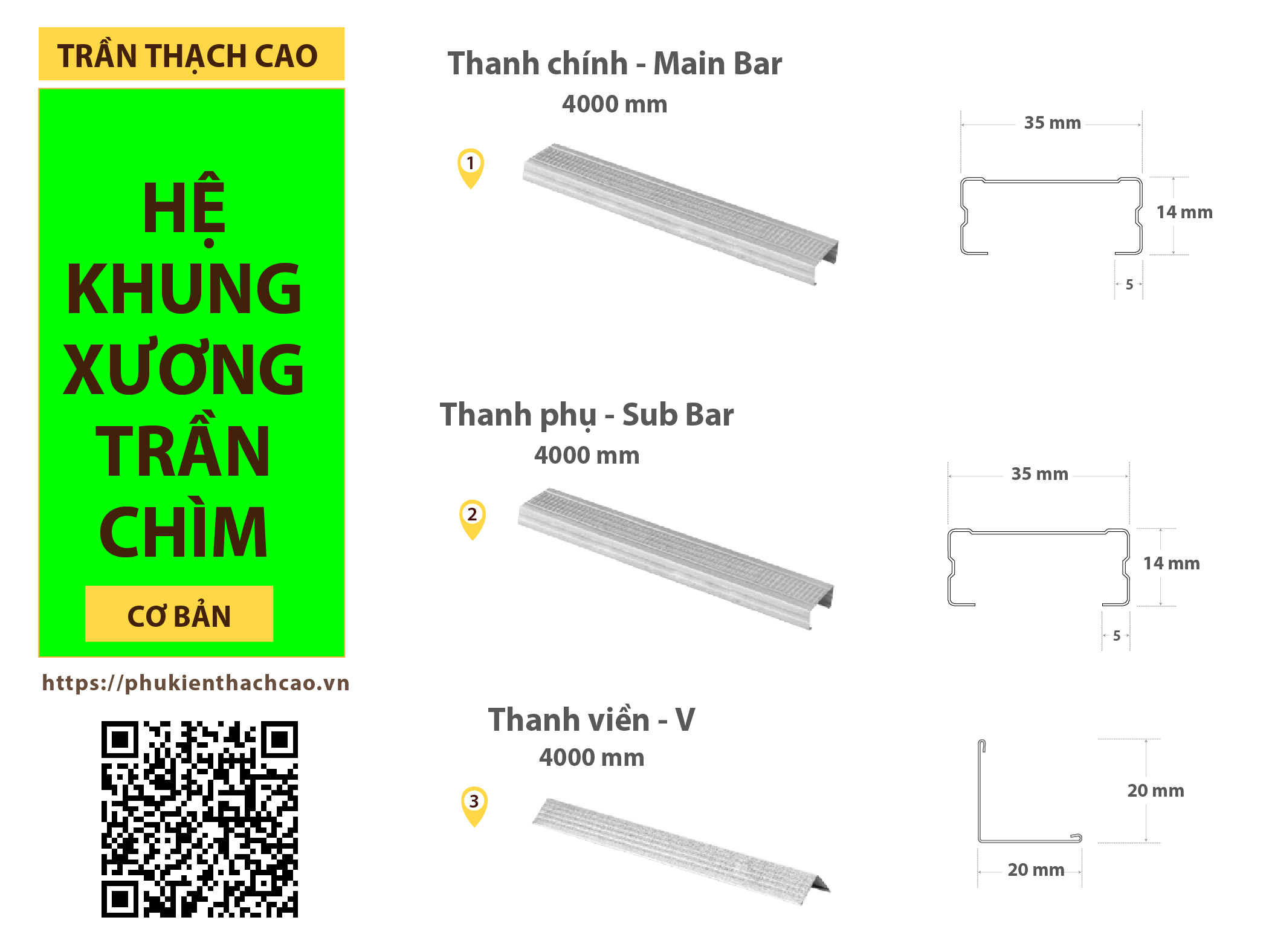 Trần thạch cao khung xương chìm là một sản phẩm hoàn hảo cho những ai muốn tạo ra không gian nội thất hiện đại và tinh tế. Cấu tạo chính của nó bao gồm khung xương, tấm thạch cao, cùng với các vật liệu phụ khác như sơn bả. Khung xương được làm từ nhôm và được bọc bởi lớp hợp kim nhôm kẽm nhằm tăng độ bền và khả năng chống oxy hóa.