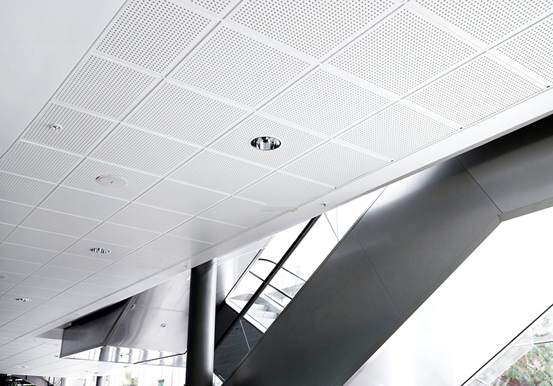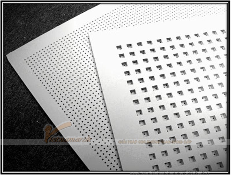 Một sản phẩm nổi bật trong dòng tấm tiêu âm là Eurocoustic®, với bề mặt đục lỗ và thiết kế hoa văn sắc nét, tạo hiệu ứng cộng hưởng âm thanh tích cực. Hệ khung xương và các tấm thạch cao cùng với bông thủy tinh giúp cải thiện đáng kể khả năng cách âm, phù hợp cho những không gian cần yên tĩnh như phòng thu, rạp hát hay những văn phòng làm việc cần tập trung cao độ.