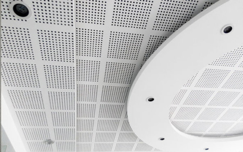 Trần thạch cao tiêu âm được cấu tạo từ thạch cao kết hợp với các vật liệu chuyên biệt, giúp hấp thụ âm thanh tốt hơn hẳn so với các vật liệu truyền thống. Những hệ trần thả hay trần chìm không chỉ đảm bảo tính thẩm mỹ với các họa tiết lỗ vuông hiện đại mà còn mang lại chất lượng âm thanh hoàn hảo, lý tưởng cho các không gian như phòng họp, studio hay lớp học.