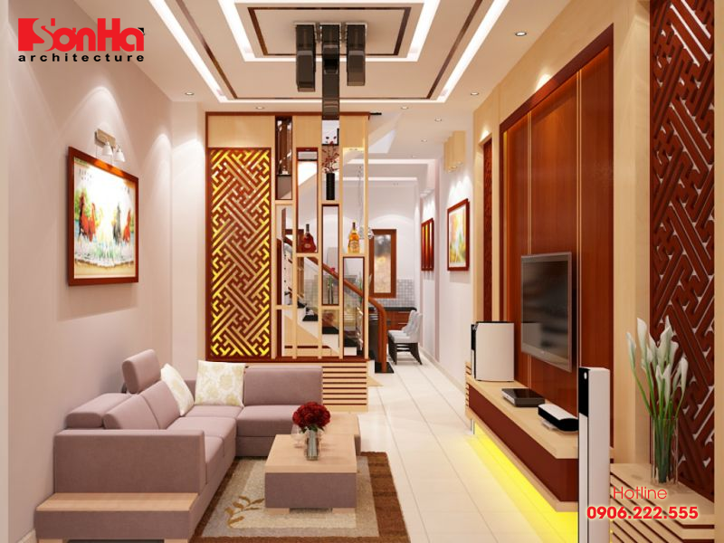 Vách ngăn phòng khách bếp nhà ống hiện đại và sang trọng