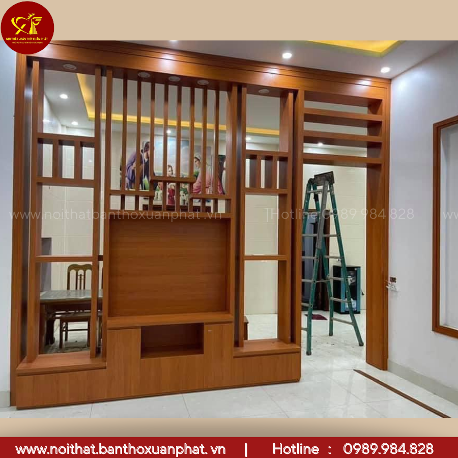 Vách ngăn phòng khách và phòng thờ bằng gỗ hiện nay đang trở thành một xu hướng được nhiều gia đình yêu thích. Với thiết kế tinh xảo và đa dạng mẫu mã, những sản phẩm này không chỉ giúp tách biệt không gian riêng tư, mà còn làm tăng tính thẩm mỹ cho ngôi nhà. Hoa văn và họa tiết chạm khắc trên vách ngăn thường tạo cảm giác sang trọng và trang trọng, rất phù hợp cho không gian tâm linh.