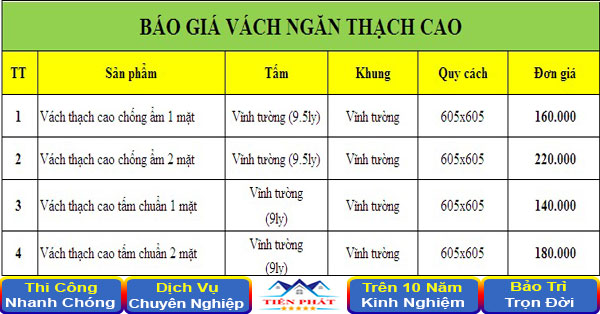 Ngoài ra, công ty còn cung cấp bảng giá thi công cạnh tranh, với mức giá từ 135.000 – 220.000/m2 cho từng loại vách ngăn. Đặc biệt, Kiên Cường hỗ trợ tư vấn miễn phí và bảo hành từ 6 đến 12 tháng, giúp bạn hoàn toàn yên tâm khi lựa chọn dịch vụ. Hãy liên hệ ngay hôm nay để trải nghiệm dịch vụ tốt nhất!