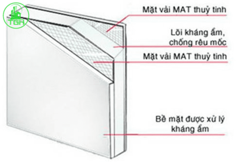 Cấu tạo của vách thạch cao cách âm rất đặc biệt, với ba phần chính. Hai lớp ngoài được làm từ xi măng polymer sẽ bao bọc lớp giữa là PIR, giúp tăng cường khả năng cách âm, chống nóng và chống cháy. Vách thạch cao cách âm thực sự là một giải pháp lý tưởng cho những không gian cần yên tĩnh.