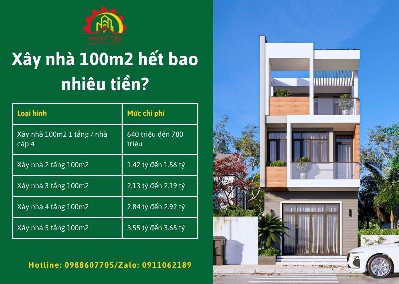 Khi xây dựng một ngôi nhà 1 tầng với diện tích 100m², việc xác định chi phí là rất quan trọng. Thông thường, chi phí trọn gói cho một ngôi nhà như vậy dao động từ 640 triệu đến 780 triệu đồng. Tuy nhiên, nếu bạn chỉ cần thi công phần thô, mức giá sẽ thấp hơn, khoảng 440 triệu đến 470 triệu đồng.