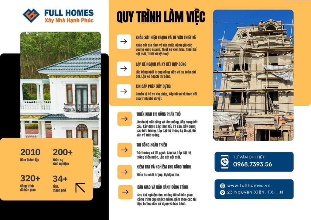Quy trình xây dựng thường bắt đầu bằng giai đoạn tư vấn và thiết kế, nơi các chuyên gia sẽ hỗ trợ bạn lựa chọn phong cách, màu sắc và bố cục phù hợp với nhu cầu và sở thích của bạn. Họ sẽ lập kế hoạch chi tiết, bao gồm bản vẽ kỹ thuật, dự toán chi phí và lịch trình xây dựng rõ ràng.